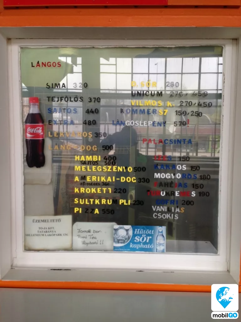 Melegszendvics, Lángos, Hamburger, Hotdog, Italok, Kv, Capuccino, Üdítő, Sőr, Tea, Forralt Bor