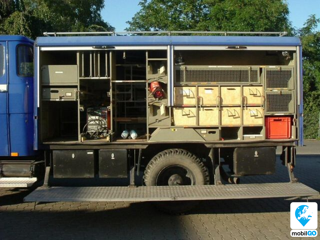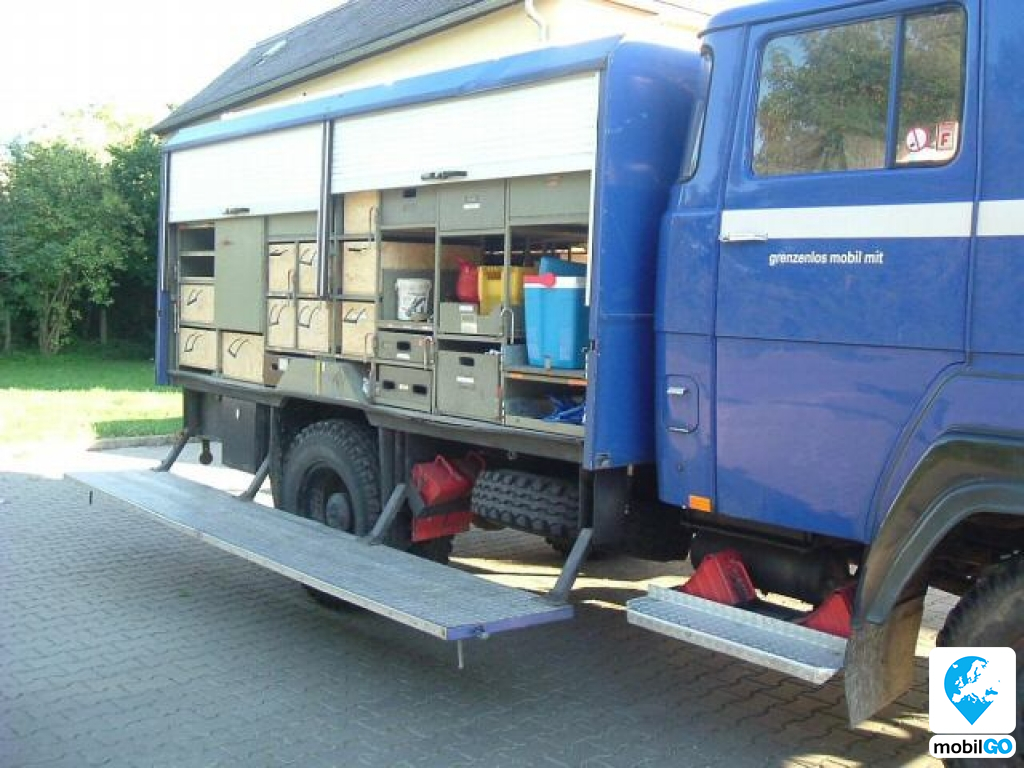 Hidraulika szivattyú, hidrocsörlő (előre 5, hátra 10t vonóerő), alu dobozos felépítmény, dupla kabin 7 személy részére, állófűtés.