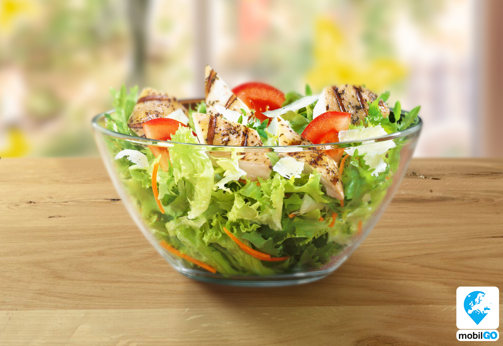 Ötféle kevert saláta, friss paradicsom a legjobb termelőktől, parmezánnal és provance-i fűszerek ízesítve, tetején pedig grill hússal. Karakteres és könnyű, Piccante vagy Caesar öntettel szolgáljuk fel.