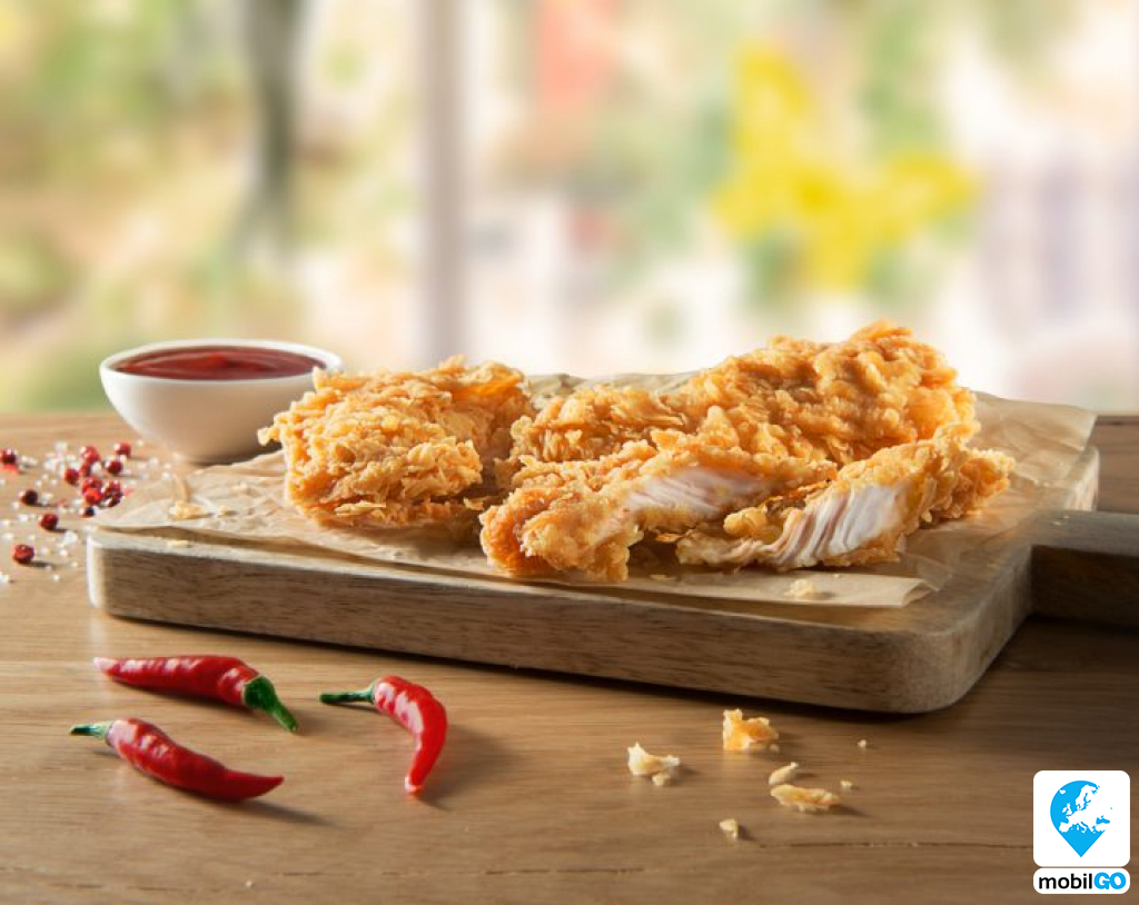 Csípős pác és kétszeres panír a titok, amitől olyan ropogós lesz a Strips bundája. A csípős és karakteres íz felelőse a panír mellett a friss csirkemell-csík. A csirkehúst mindig felszolgálás előtt készítjük el – így nem várakoznak sokáig a Strips-ek, frissen, ízletesen kerülnek a tálcádra.